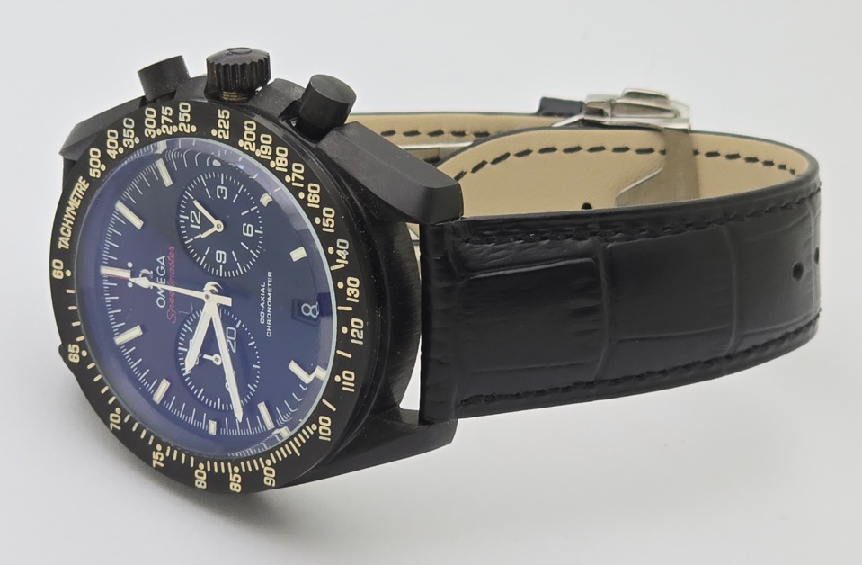 Omega Speedmaster Dark Side of the Moon Black Leather Strap Watch