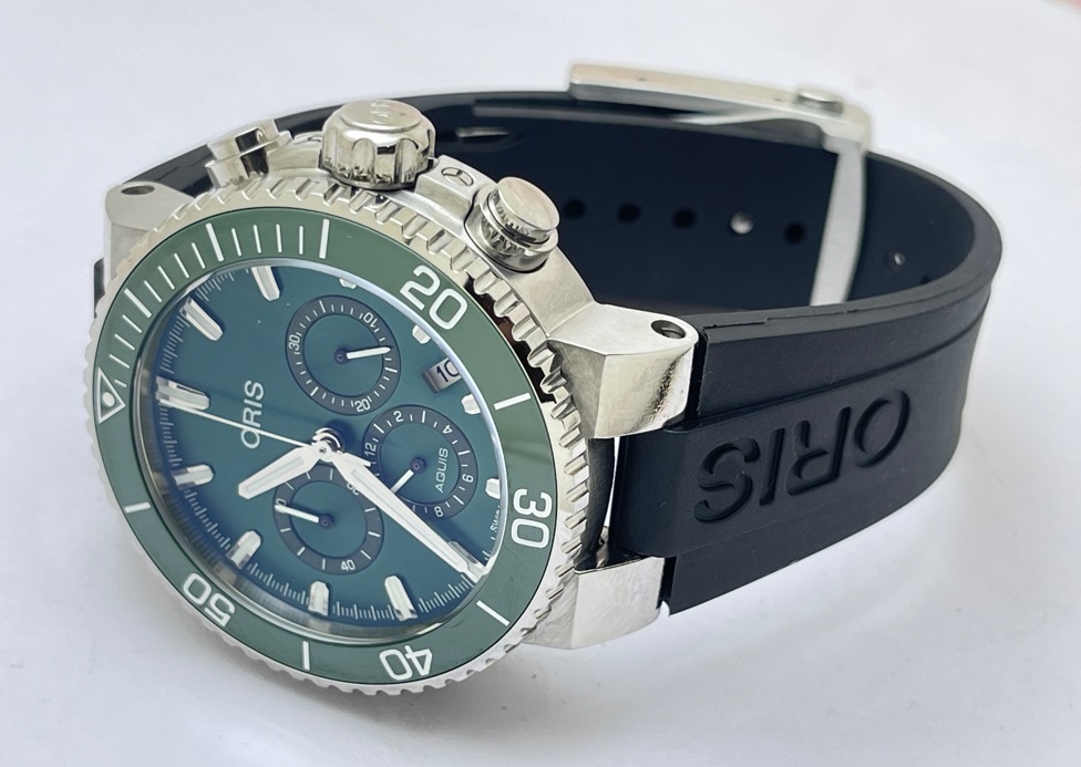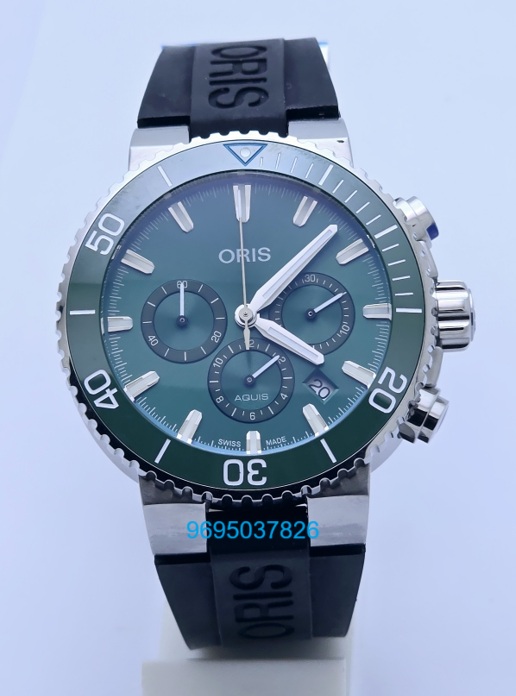 Oris Aquis Chronograph Green Black Rubber Strap Watch