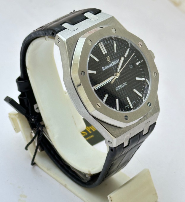 Audemars Piguet Royal Oak Steel Black Leather Strap Swiss Automatic Watch