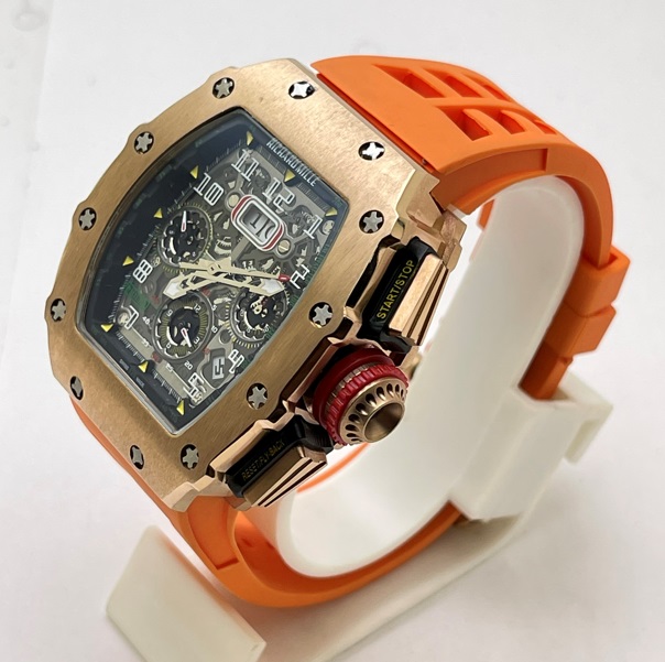 Richard Mille RM11 Rose Gold Orange Rubber Strap Swiss Automatic Watch