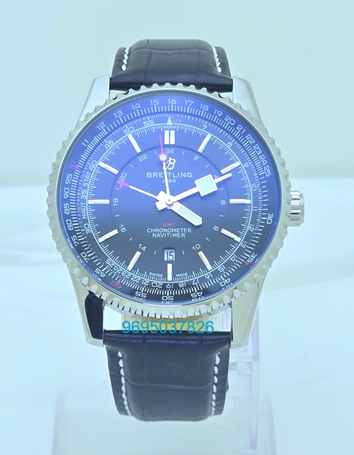 Breitling Navitimer GMT Black Leather Strap Swiss Automatic Watch