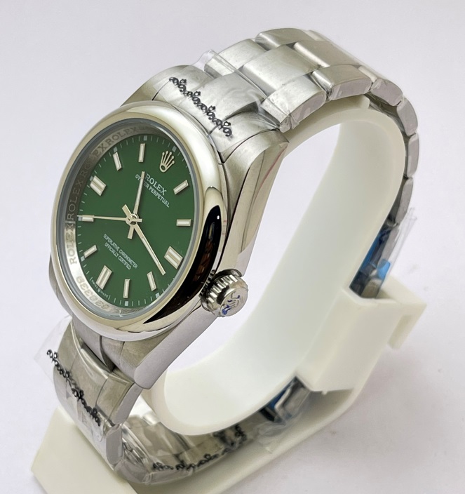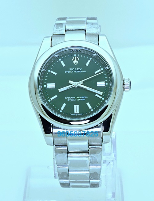 Experience the epitome of luxury and precision with the Rolex Oyster Perpetual Green Steel First Copy Watch. This exquisite timepiece features a striking green dial that captures attention while the robust stainless steel case ensures durability and elegance. Powered by Rolex’s renowned self-winding movement, it offers unparalleled accuracy and reliability. The Oyster case design guarantees water resistance, making it perfect for both formal occasions and everyday wear. Elevate your style and make a statement with this iconic watch that embodies sophistication and craftsmanship.