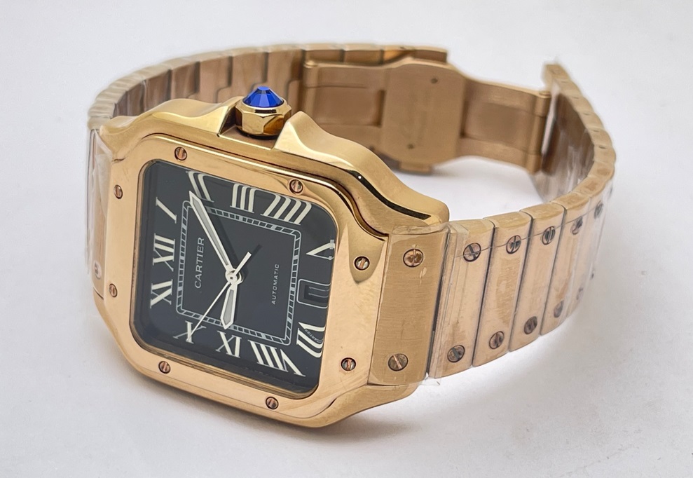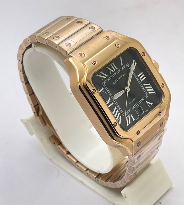 Cartier Santos 100 Black Rose Gold Swiss Automatic Watch