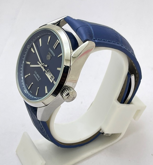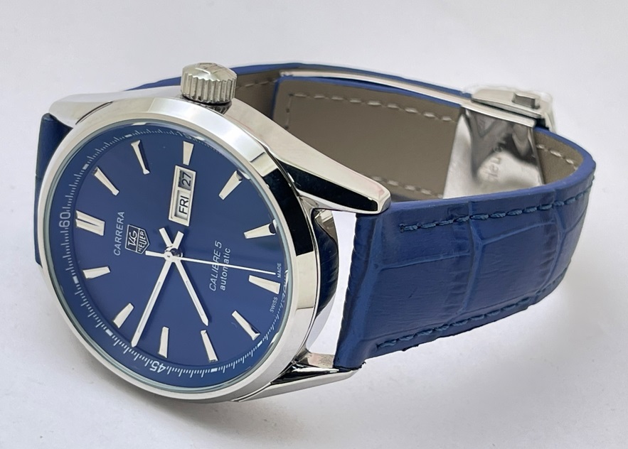 Tag Heuer Carrera Calibre 5 Day-Date Blue Leather Strap Swiss Automatic Watch