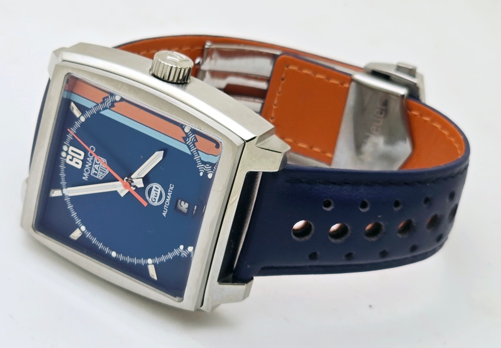 - Iconic Craftsmanship: The Monaco square case boasts a timeless aesthetic—modern yet retro.