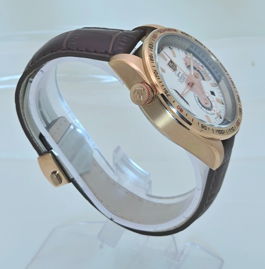 Tag Heuer Grand Carrera Calibre 36 White Rose Gold Leather Strap Watch