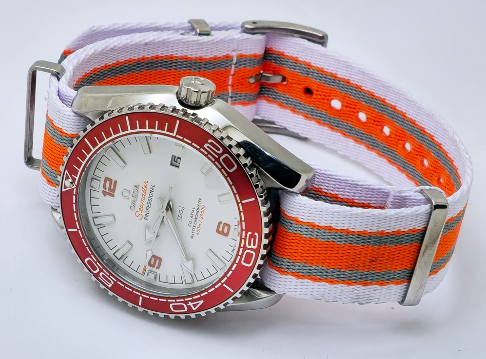 Omega Seamaster Planet Ocean Orange Nato Strap Swiss Automatic Watch
