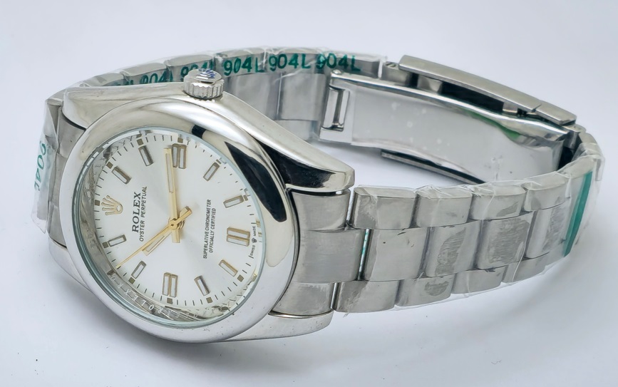 Experience timeless elegance with the Rolex Oyster Perpetual White Steel Watch in the best first copy watch store near me, a masterpiece of precision and style. Crafted from high-quality stainless steel, this watch features a striking white dial that enhances its classic aesthetic, making it suitable for any occasion. The Oyster case ensures water resistance and durability, while the self-winding movement guarantees reliability and accuracy. Elevate your wrist game with this iconic timepiece that embodies luxury and sophistication, perfect for those who appreciate the finer things in life.