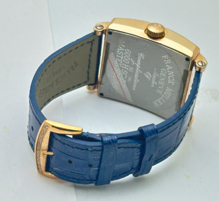 Franck Muller Master Square Diamond Blue Leather Strap Watch