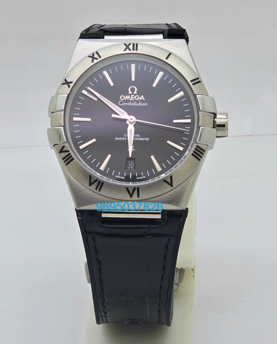 Omega Constellation Steel Black Strap Swiss Automatic Watch