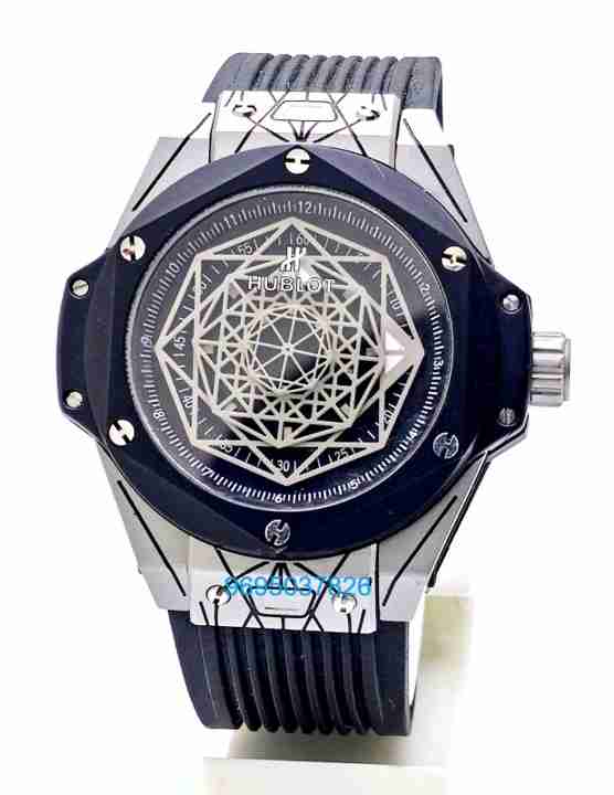 The Hublot Big Bang Sang Bleu Men’s Watch is a stunning fusion of artistry and precision, designed for the modern man who appreciates both style and functionality. Featuring a striking geometric dial and a robust ceramic case, this timepiece embodies the spirit of contemporary luxury. Its automatic movement ensures reliable performance, while the bold design elements, including a unique crown and intricate hour markers, make it a true statement piece. Elevate your wrist game with this exceptional watch that seamlessly blends sophistication with avant-garde aesthetics.