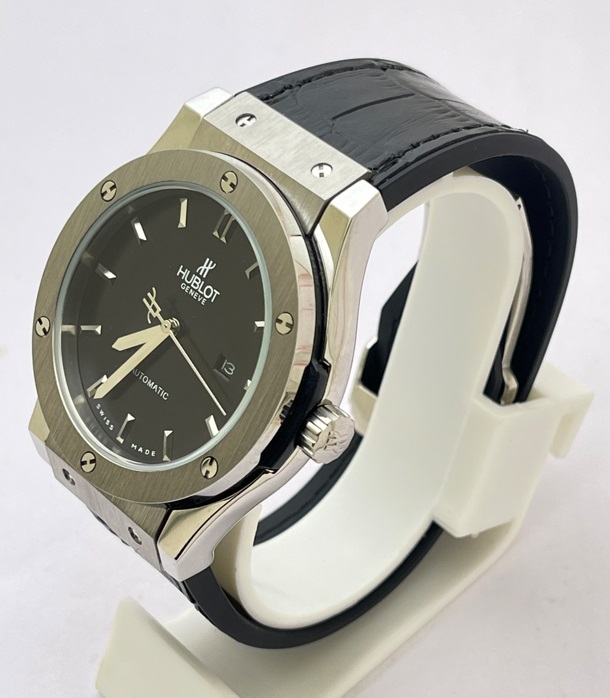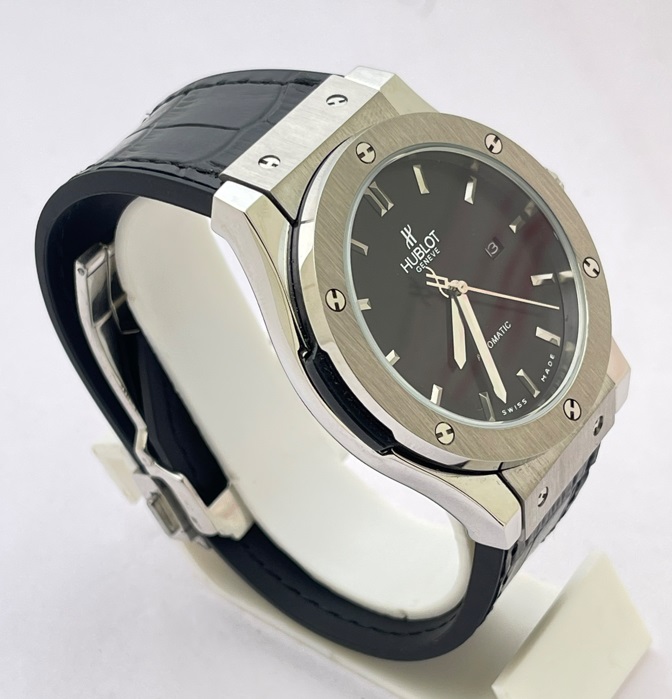 Experience the perfect blend of elegance and precision with the Hublot Vendom Classic Steel Black Leather Strap Swiss Automatic Watch. Crafted with a robust stainless steel case and a luxurious black leather strap, this timepiece exudes sophistication while ensuring durability. The Swiss automatic movement guarantees accurate timekeeping, making it an essential accessory for both formal and casual occasions. Elevate your style and make a statement with this exquisite watch that embodies the essence of luxury and craftsmanship.