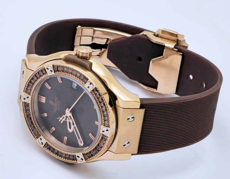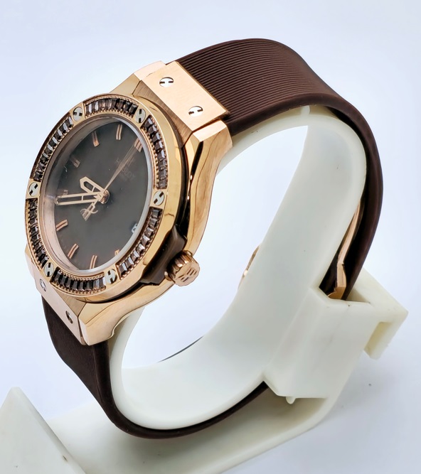 Hublot Classic Fusion Diamond Brown Rubber Strap Ladies Watch