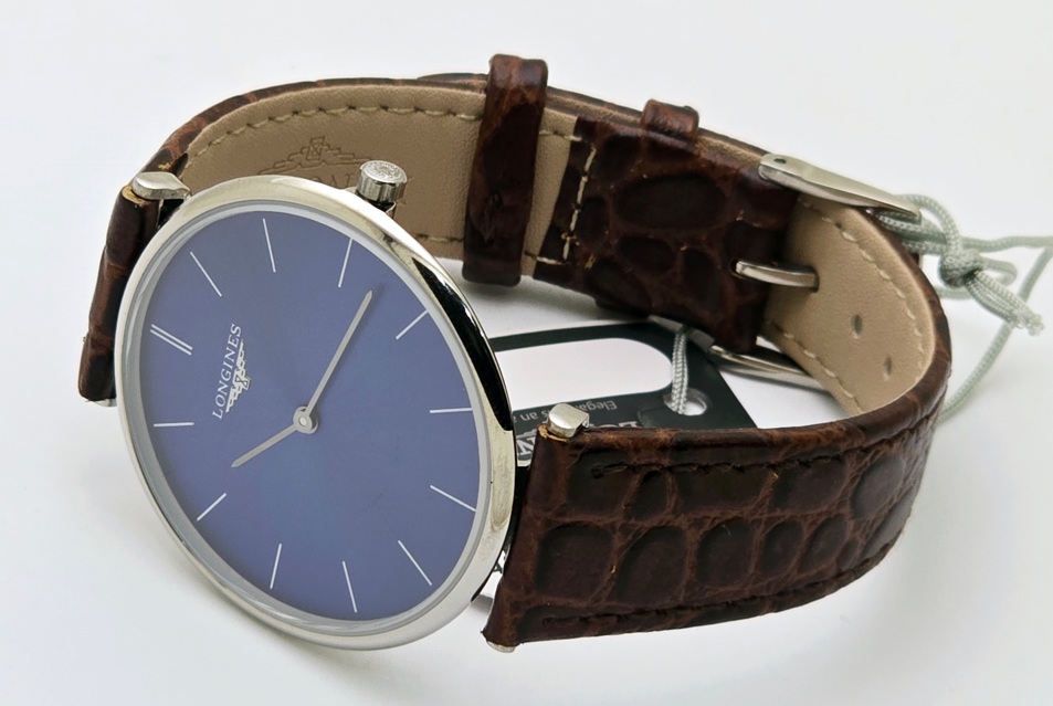 Longines La Grande Classique Ultra Slim Stick Mark Blue Steel Leather Strap Watch