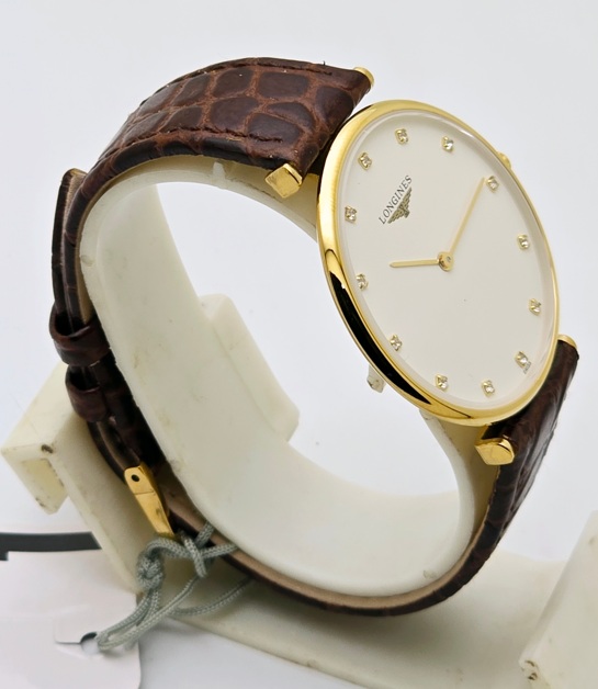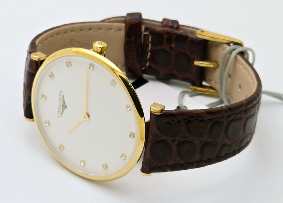 Longines La Grande Classique Ultra Slim Diamond Mark Gold Leather Strap Watch