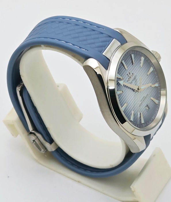 OMEGA SEAMASTER AQUA TERRA STONE BLUE RUBBER STRAP SWISS AUTOMATIC WATCH