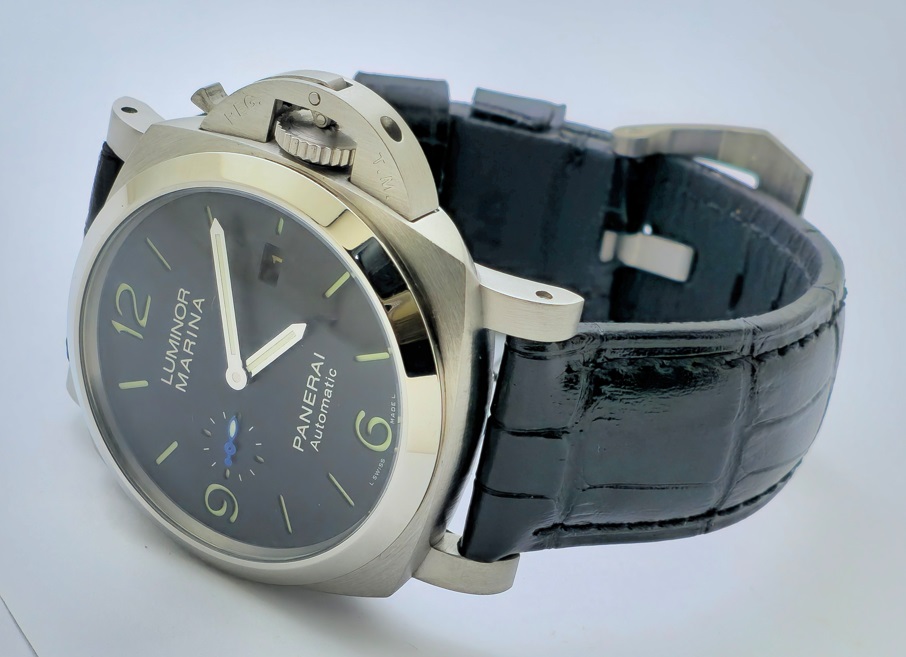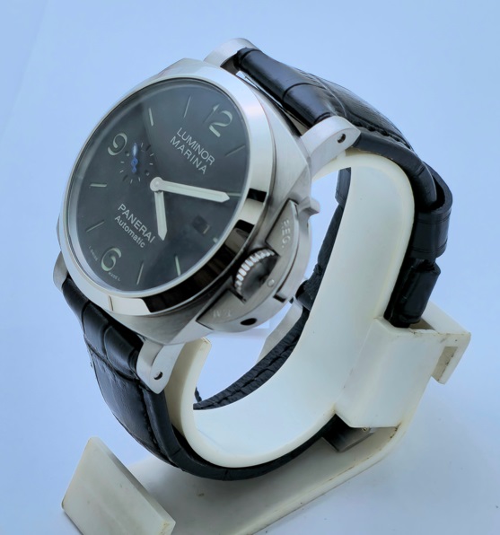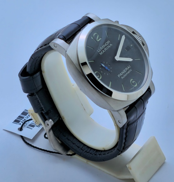 Panerai Marina Steel Black Leather Strap Swiss Automatic Watch