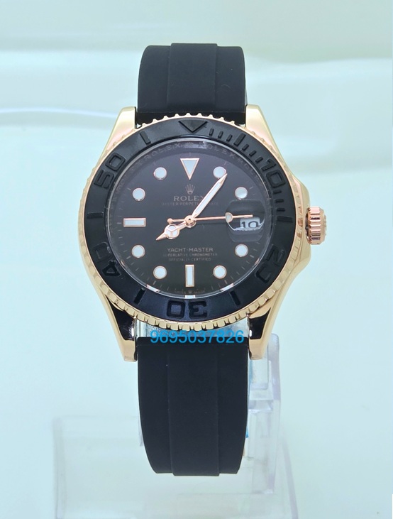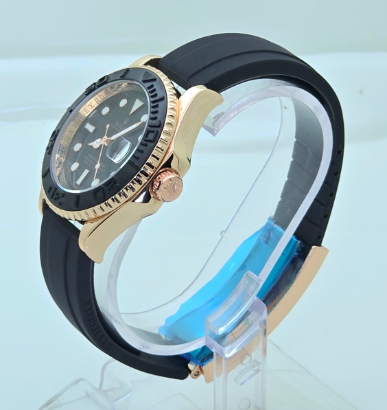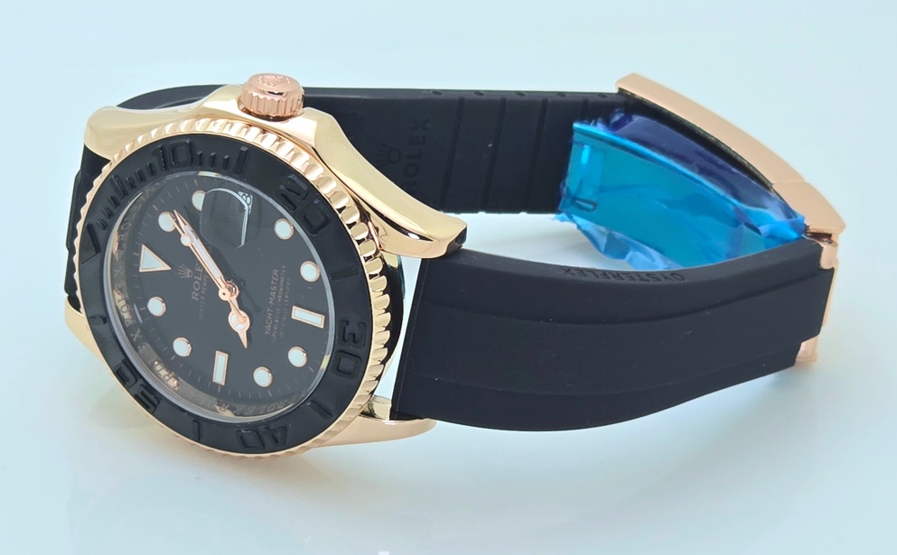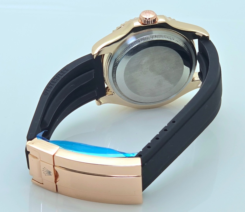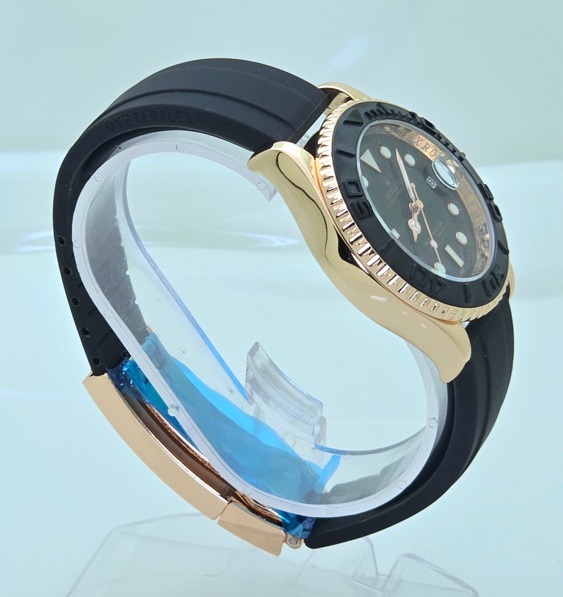 Rolex Yacht Master Rose Gold Black Rubber Strap Swiss Automatic Watch