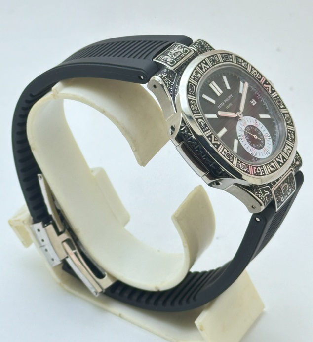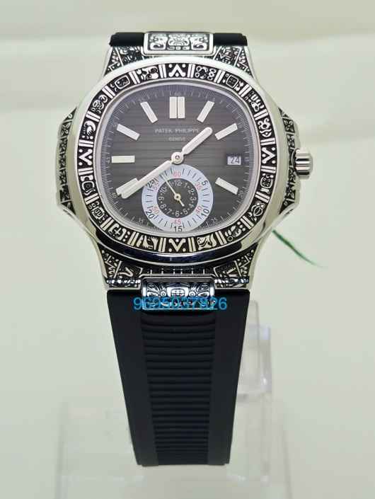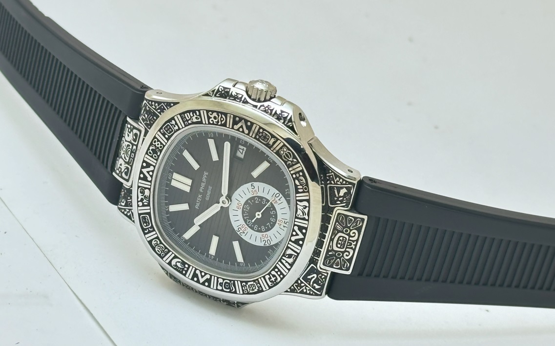 Patek Philippe Nautilus Hand Engraved Mayan/Aztec Swiss ETA Caliber 5910/1A Valjoux Movement Automatic Watch
