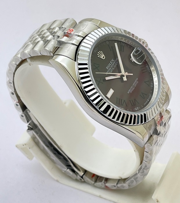 Elevate your style with the Rolex Date-Just Roman Mark Grey Steel First Copy Watches Delhi, a timeless piece that seamlessly blends sophistication and functionality. Crafted from high-quality stainless steel, this watch features a striking grey dial adorned with elegant Roman numerals, ensuring readability and a classic aesthetic. The iconic Date-Just functionality allows for precise date tracking, while the robust construction guarantees durability for everyday wear. Perfect for both formal occasions and casual outings, this watch is a statement of luxury and precision that every discerning individual should own.