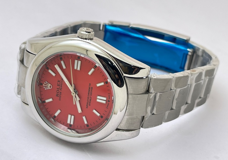 [vc_row][vc_column][vc_column_text css=”” woodmart_inline=”no” text_larger=”no”]Rolex Oyster Perpetual RED Steel Swiss Automatic Watch