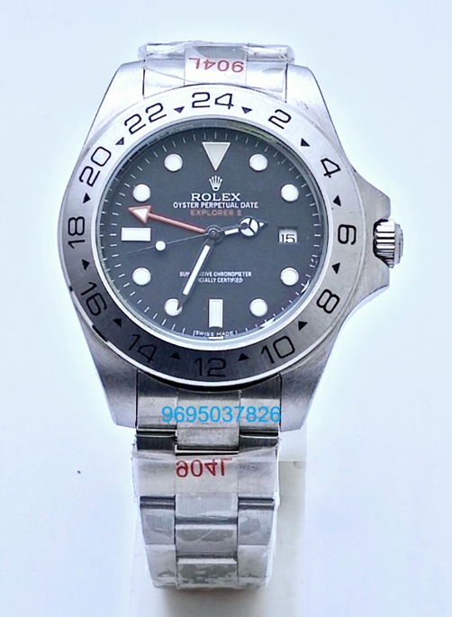 Discover the epitome of luxury and functionality with the Rolex Explorer GMT Steel Bracelet First Copy Watch in Delhi. This exquisite timepiece features a robust stainless steel case and a striking black dial, designed for the modern adventurer. With its dual time zone capability, luminous markers, and a durable Oyster case, this watch is perfect for those who seek precision and style, whether in the boardroom or on a mountain peak. Elevate your collection with a watch that embodies both elegance and resilience, making it an essential accessory for any discerning individual.
