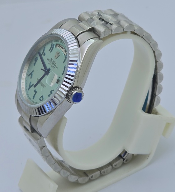 Experience the epitome of luxury with the Rolex Day-Date Arabic Dial Ice Blue First Copy Replica Watch, a stunning timepiece that seamlessly combines elegance and functionality. Featuring a striking ice blue dial adorned with Arabic numerals, this watch not only offers exceptional readability but also adds a unique touch to your collection. Crafted from premium materials, the Day-Date is renowned for its precision and durability, making it the perfect accessory for both formal and casual occasions. Elevate your style and make a statement with this iconic watch, embodying sophistication and timelessness.
