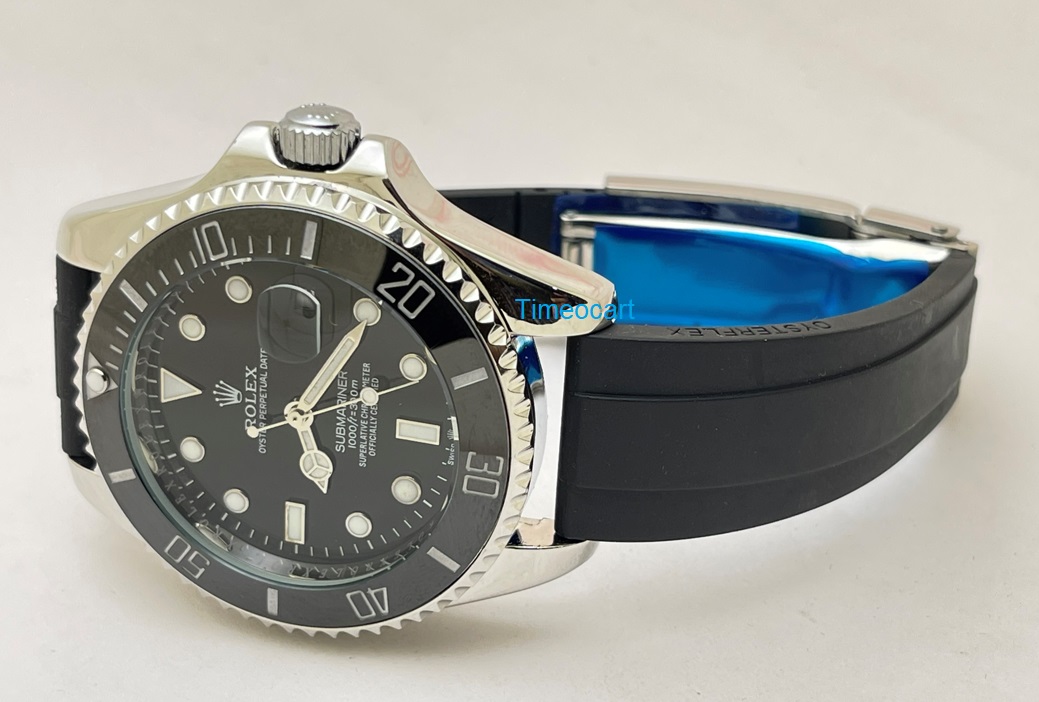Rolex Submariner Black Rubber Strap Swiss Automatic Watch