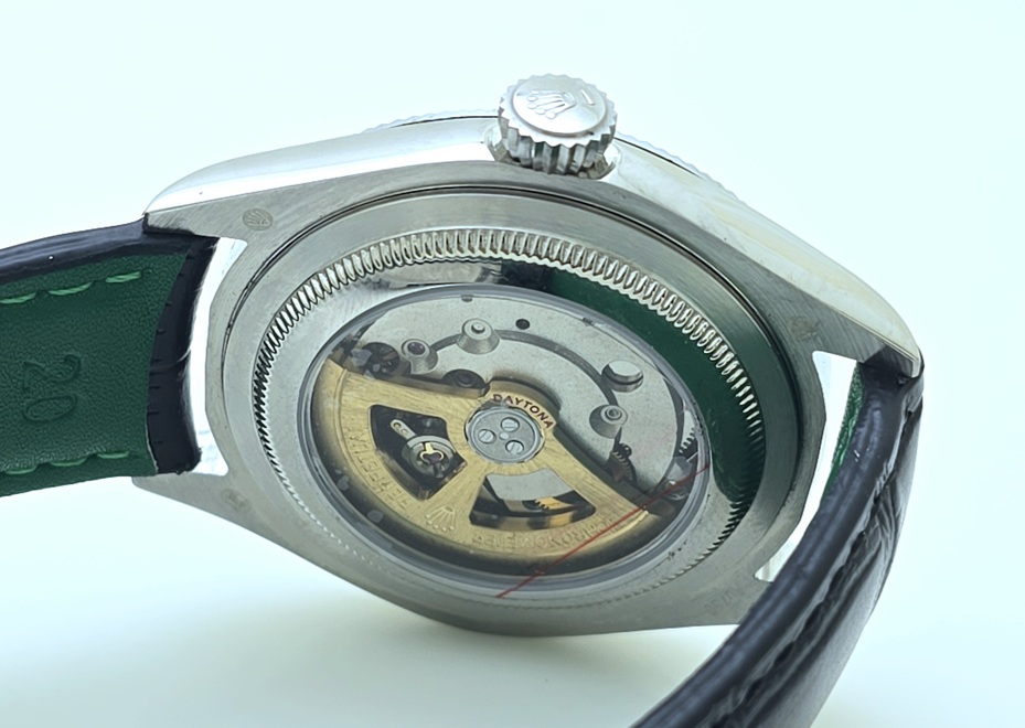 - Open case-back showcasing the automatic movement