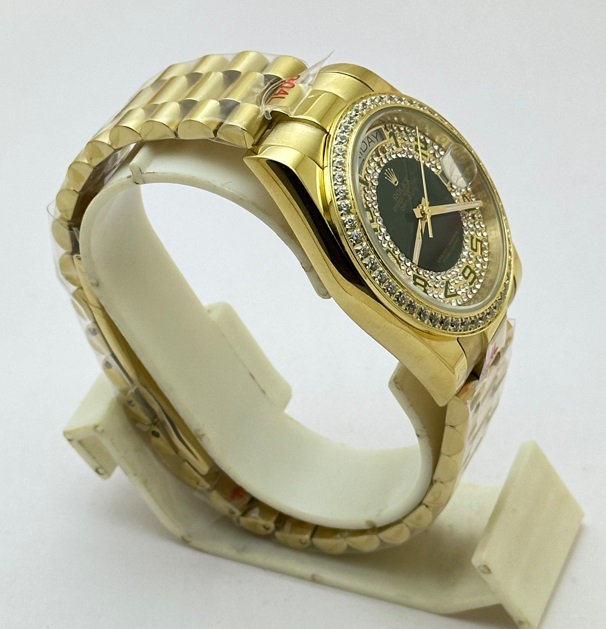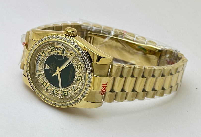 Rolex Day-Date Green Diamond Paved Gold Swiss Automatic Watch