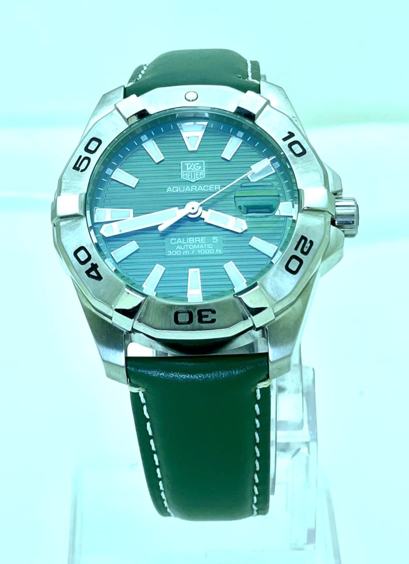 Tag Heuer Aquaracer Calibre 5 Green Leather Strap Swiss Automatic Watch