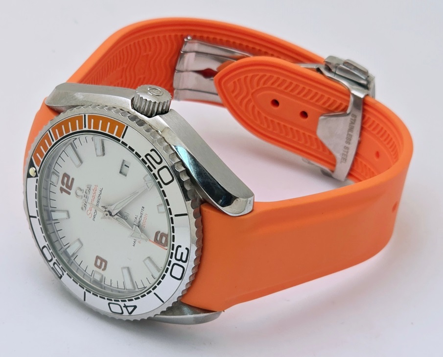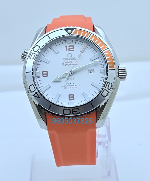 Omega Seamaster Planet Ocean White Orange Rubber Strap Swiss Automatic Watch