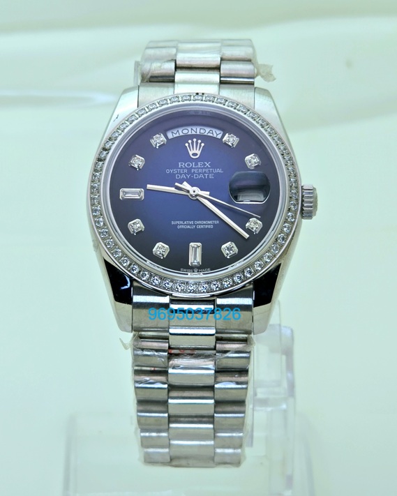 Rolex Day-Date Blue Steel Diamond Bezel 36MM Swiss ETA Automatic 2836 Valjoux Movement Watch